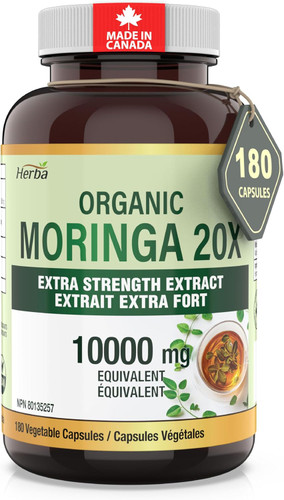 کپسول مورینگا ارگانیک 10,000 میلی‌گرم – 180 عدد | غلظت فوق‌العاده 20:1 | ساخت کانادا