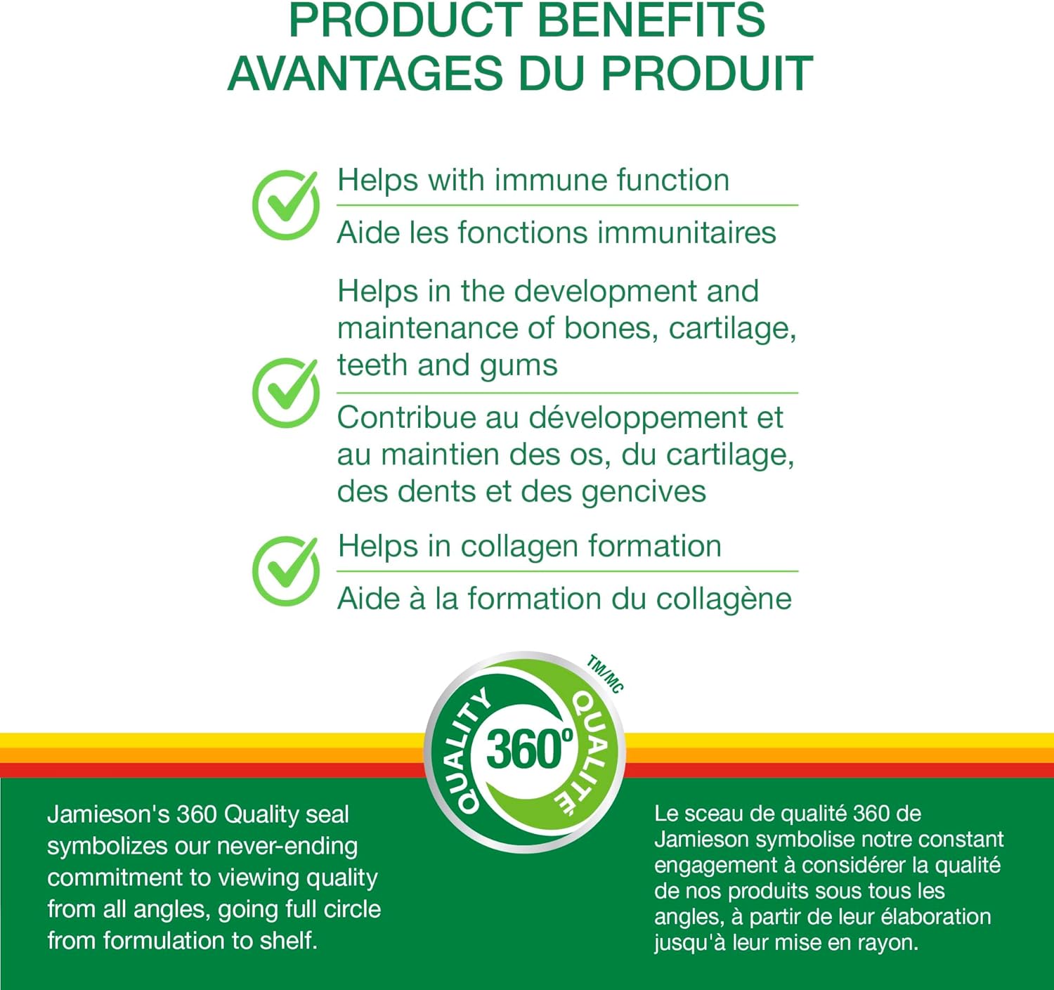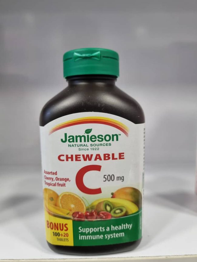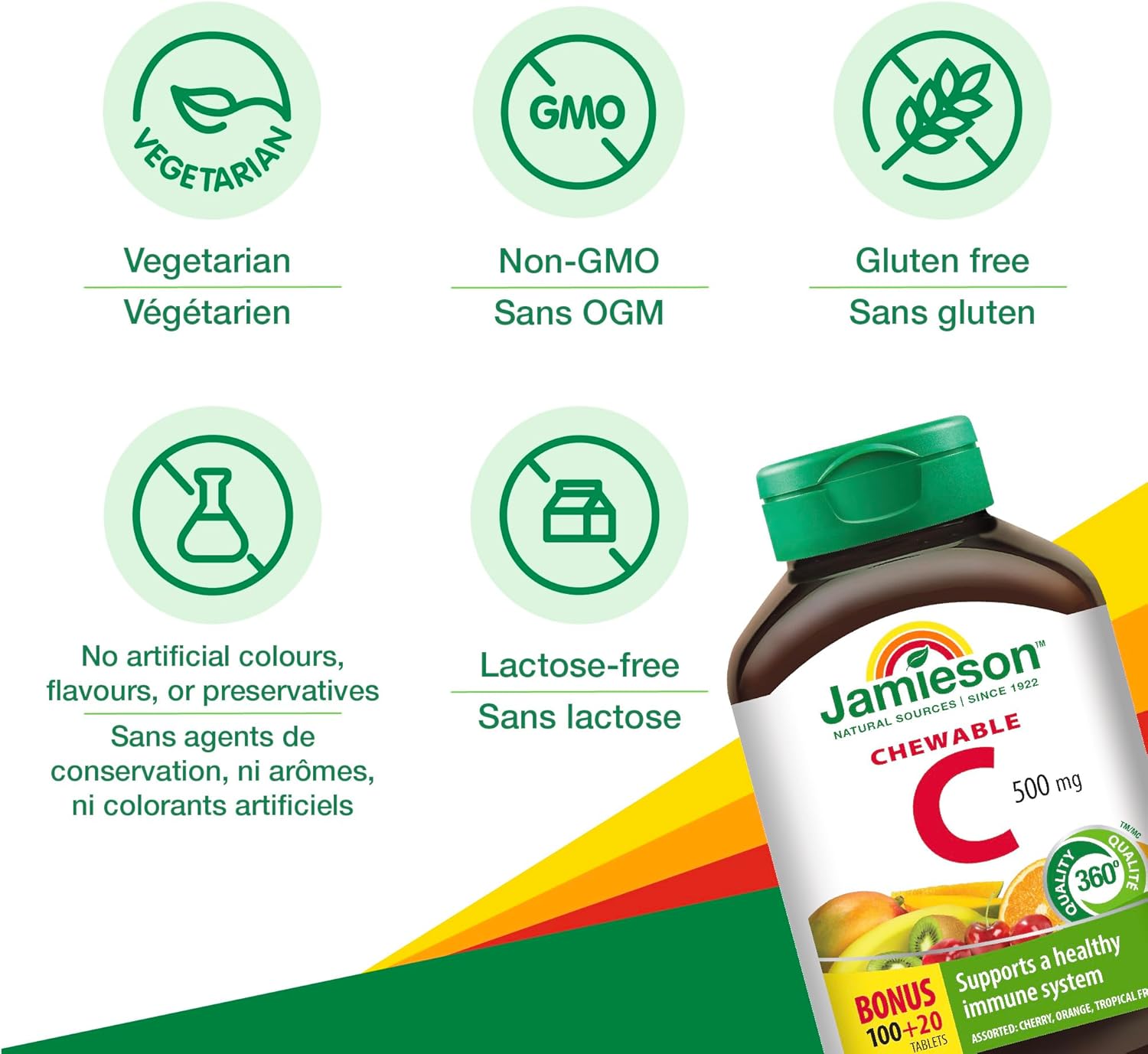 ⭐ Jamieson Laboratories Vitamin C Chewable 500mg, Mixed 3 Flavours, 120 Count ⭐