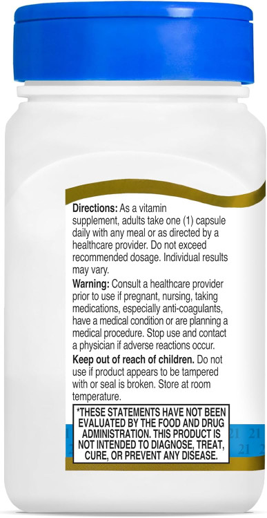 21st Century Healthcare Vitamin K2 (MK-7) 100 mg Vegetarian Capsules, 110 Count