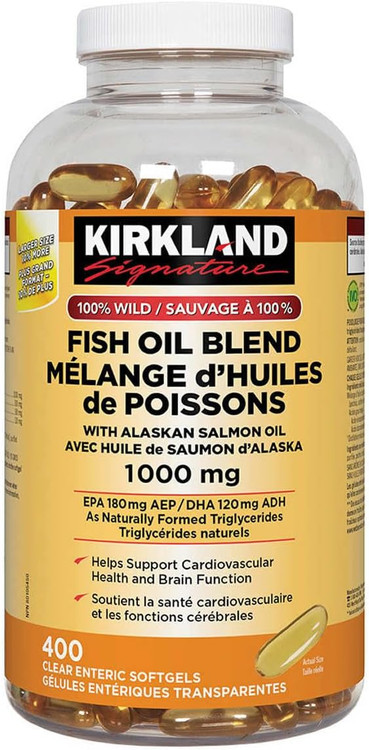 Kirkland Signature 100% Wild Fish Oil Blend with Alaskan Salmon Oil, 1000mg, 400 Softgels