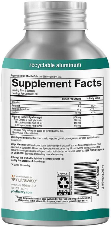 Youtheory Ocean Friendly Omega, Sourced from Fish-Free Algae Oil - 120 Softgels