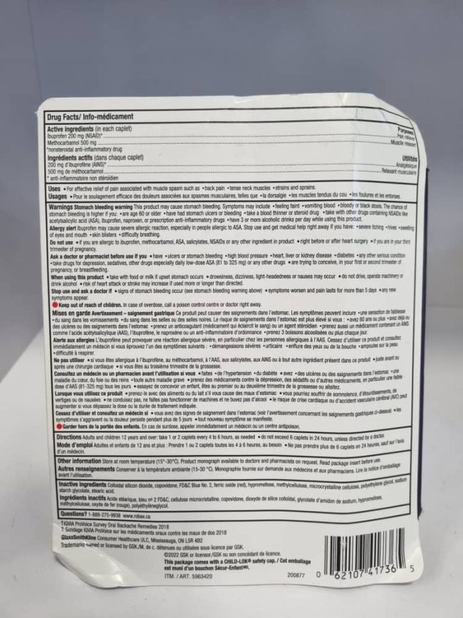• Methocarbamol (400mg): شلکننده عضلات برای کاهش اسپاسم.