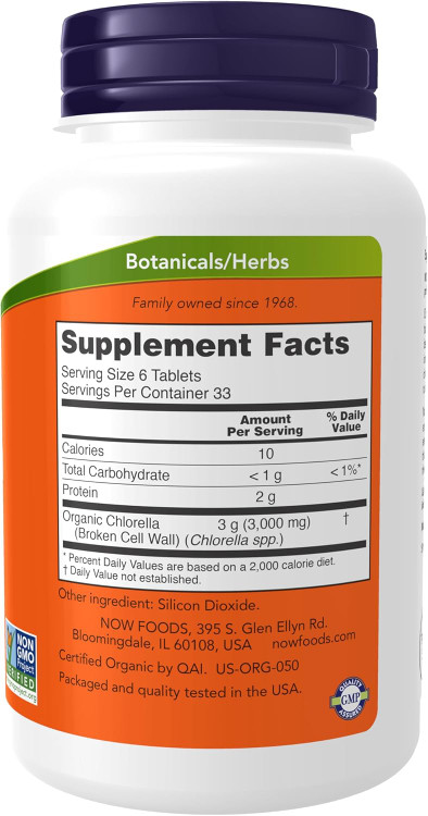 NOW Foods, Certified Organic Chlorella, 3,000 mg, 200 Tablets (500 mg Per Tablet)