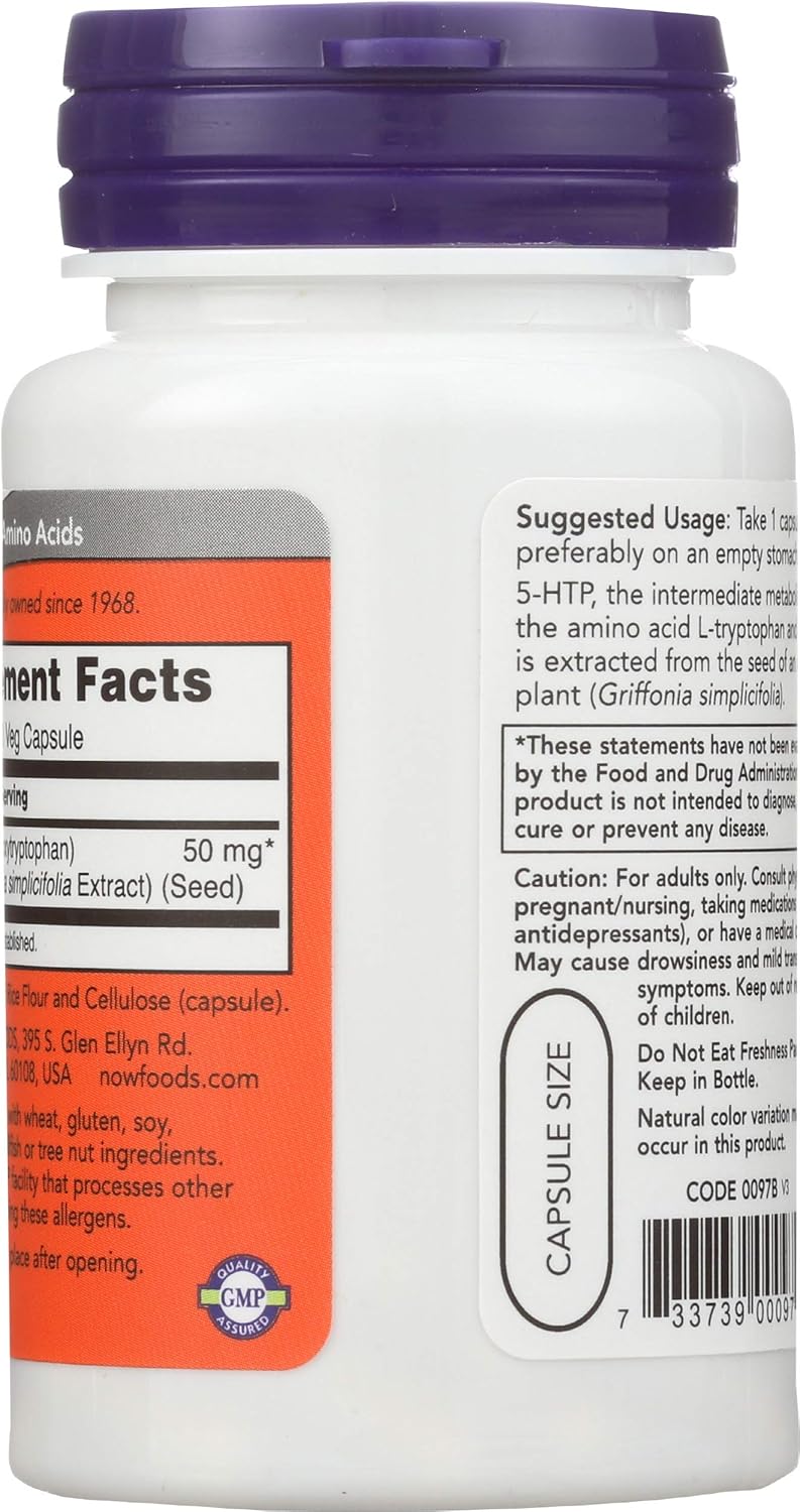 NOW Foods, 5-HTP, 50 mg, 30 Veg Capsules
