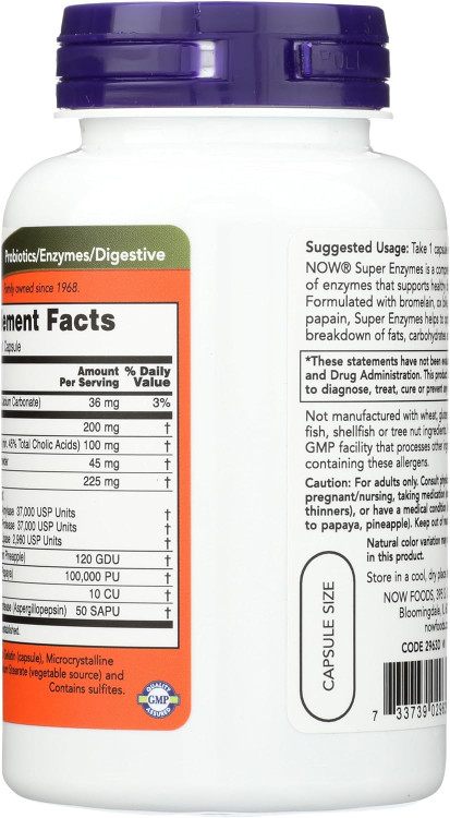 مکمل سوپر آنزیمز (NOW Foods Super Enzymes) با ترکیبی از آنزیمهای قوی و موثر طراحی شده است تا به هضم بهتر غذاها و جذب مواد مغذی کمک کند. این محصول حاوی 90 کپسول و مجموعهای از آنزیمها مانند بروملین، پانکراتین، پاپائین و بتائین هیدروکلراید است که نقش کلیدی در بهبود عملکرد سیستم گوارشی دارند.