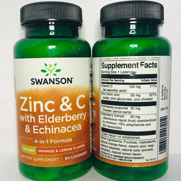 Swanson, Zinc & C with Elderberry & Echinacea, Orange & Lemon, 60 Lozenges