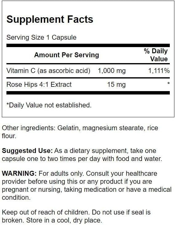Swanson, Vitamin C With Rose Hips, 90 Capsules