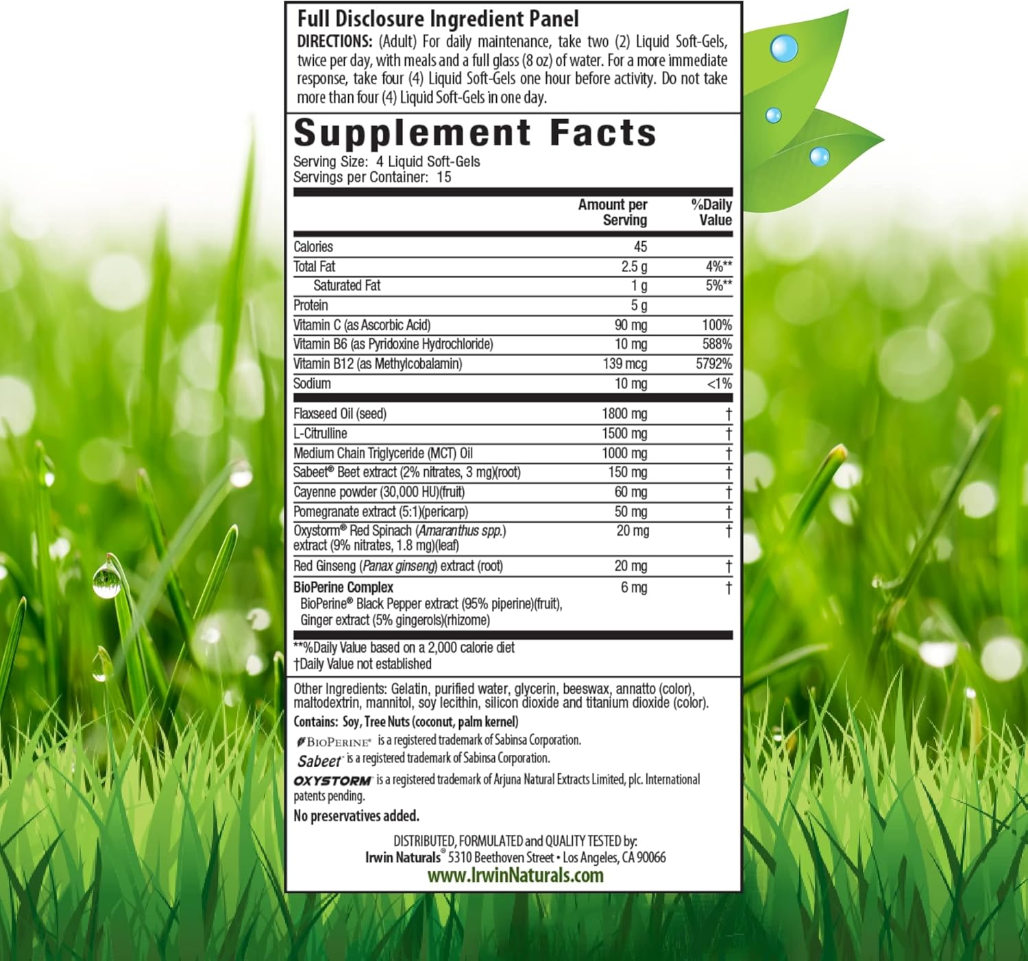 ایروین نچرالز، مکمل چغندر قرمز RED®، تقویتکننده نیتریک اکسید (60 سافت ژل)