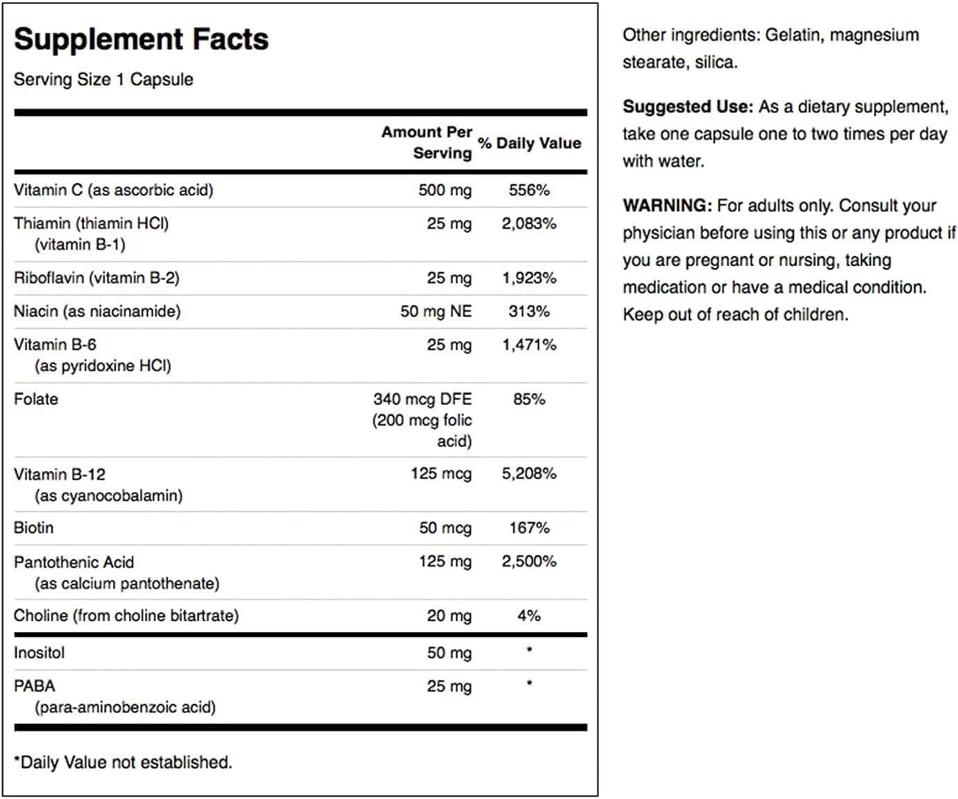 Swanson Super Stress B-Complex یک فرمولاسیون قدرتمند حاوی ویتامینهای گروه B به همراه ویتامین C است که به کاهش استرس، افزایش انرژی و حمایت از سیستم عصبی کمک میکند.