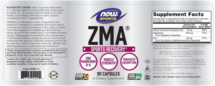 NOW Foods, Sports, ZMA, Sports Recovery, 90 Veg Capsules