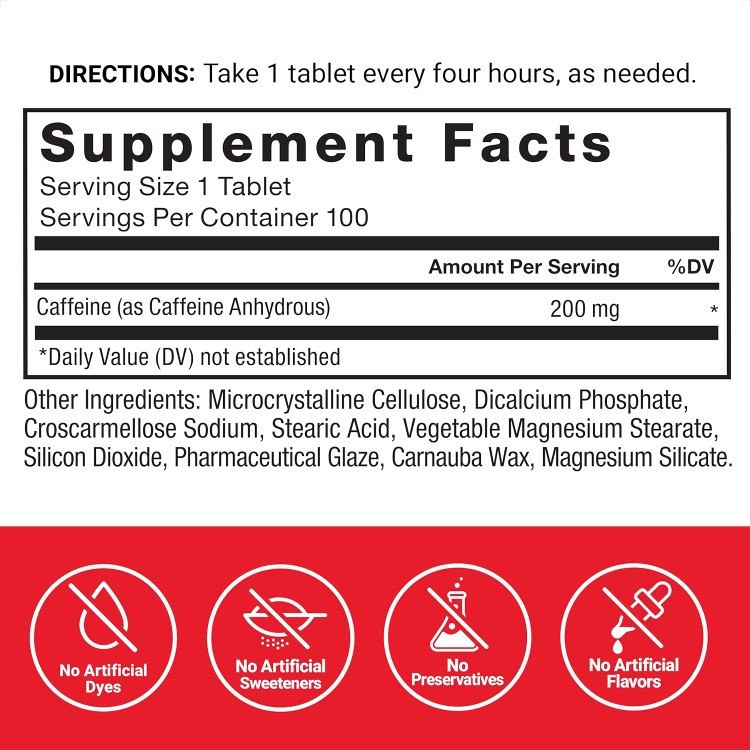 در مقایسه با نوشابههای انرژیزا و قهوههای سنگین، قرص کافئین بدون شکر و مواد افزودنی غیرضروری است و دوز مشخص و دقیقی از کافئین را فراهم میکند.