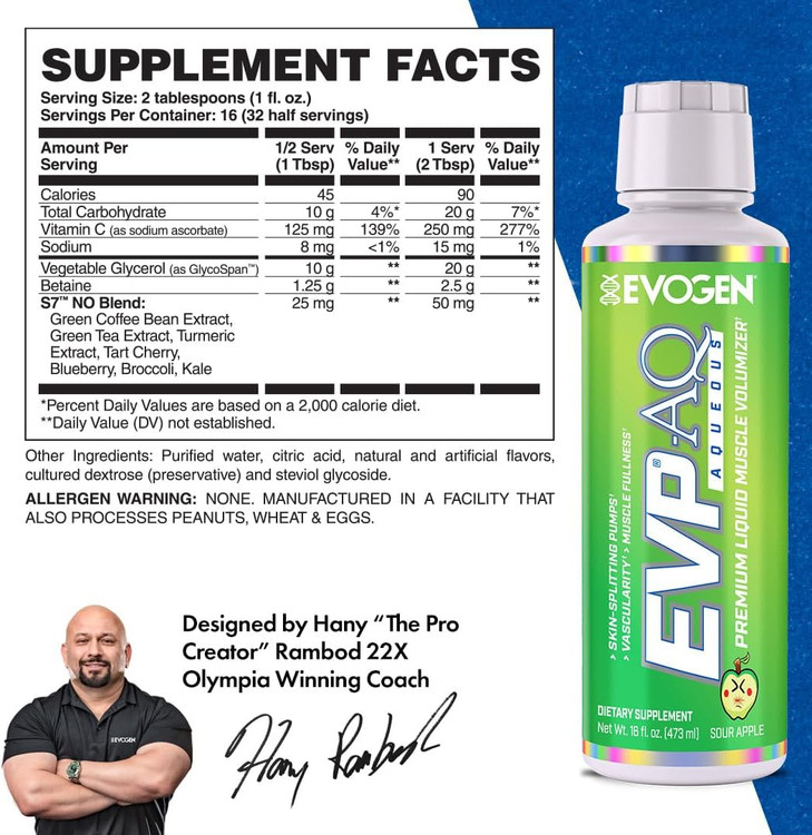 معرفی و بررسی مکمل Evogen EVP AQ - Liquid Glycerol Muscle Volumizer (Sour Apple)