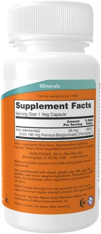 آهن دوبرابر قدرت ۳۶ میلیگرم ناو فودز (NOW Foods Iron Double Strength 36 mg)