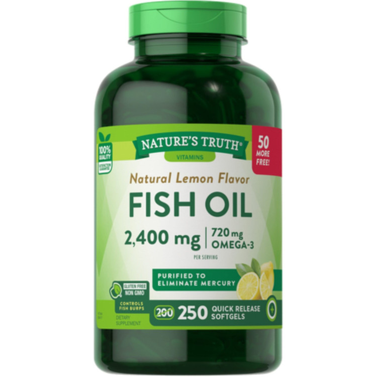Nature’s Truth Burpless Fish Oil 2400mg یک مکمل باکیفیت حاوی روغن ماهی با دوز بالا است که برای حفظ سلامت قلب، مغز و مفاصل طراحی شده است. این محصول شامل 250 سافت ژل بوده و در هر دو عدد سافت ژل، 2400 میلیگرم روغن ماهی و 720 میلیگرم امگا 3 (شامل EPA و DHA) تأمین میکند.