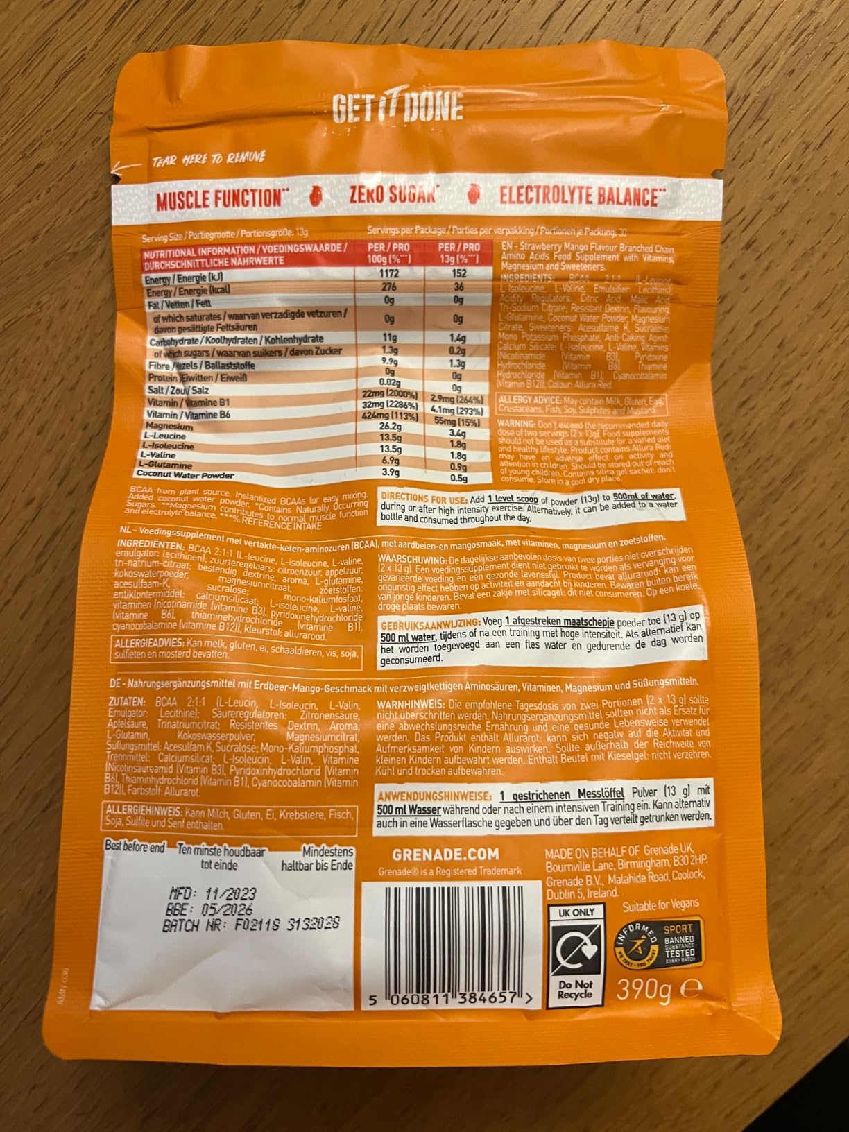Grenade BCAA Intra Workout Powder – Zero Sugar (30 Servings)