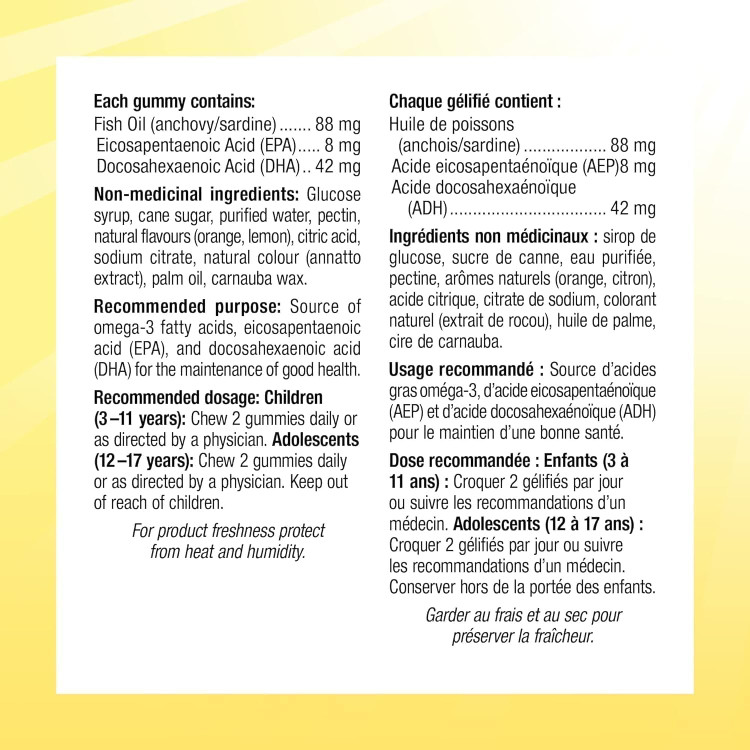 این مکمل جویدنی خوشمزه از برند Webber Naturals برای کودکان ۳ سال به بالا طراحی شده و حاوی اسیدهای چرب ضروری امگا ۳ و DHA است که نقش حیاتی در رشد مغز، بینایی و سلامت عمومی کودکان دارد. این محصول با طعمهای طبیعی و بدون مواد افزودنی مضر، مصرف امگا ۳ را برای کودکان آسان و لذتبخش میکند.