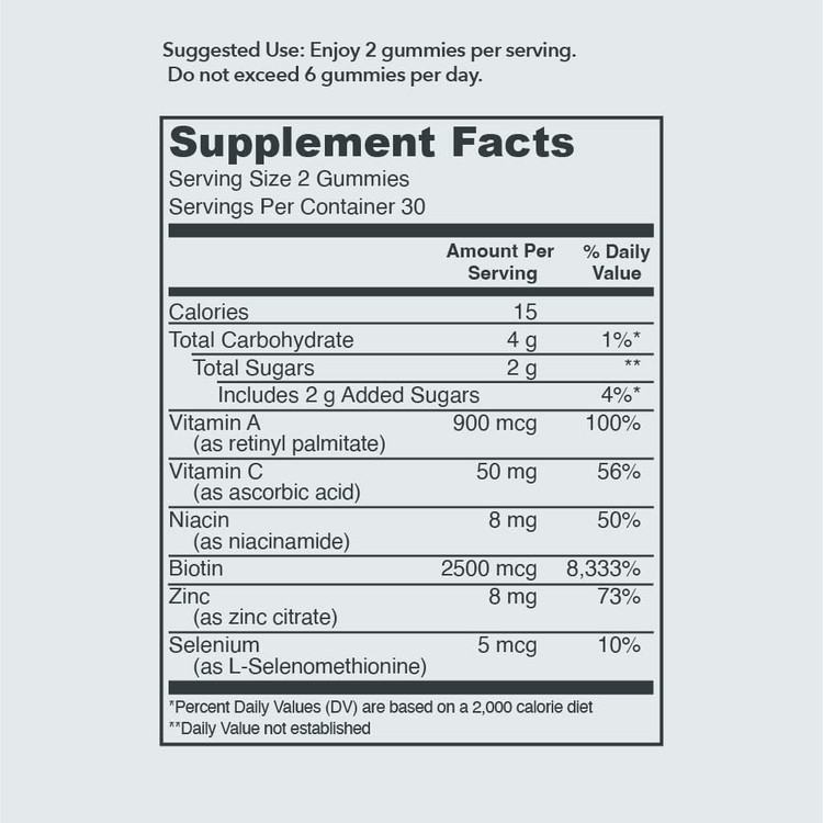 ✔ حاوی 2500 میکروگرم بیوتین – تقویتکننده رشد مو، سلامت پوست و ناخنها