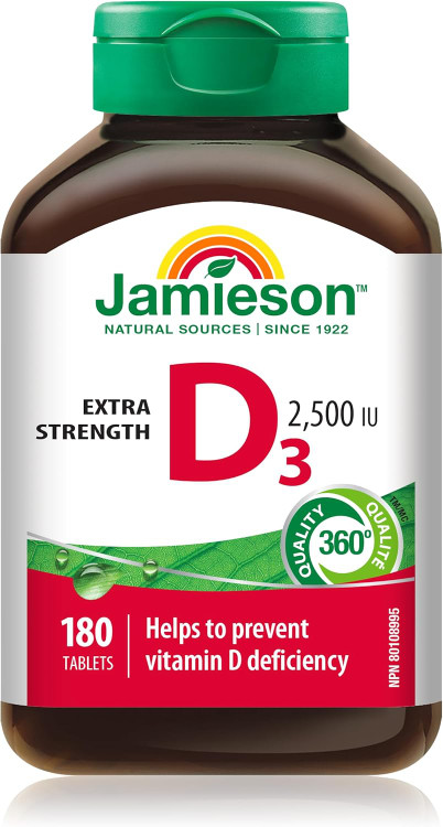 قرص ویتامین D3 جیمیسون ۲۵۰۰ واحد (۱۸۰ عددی) | Jamieson Extra Strength Vitamin D3 2,500 IU – 180 Tablets