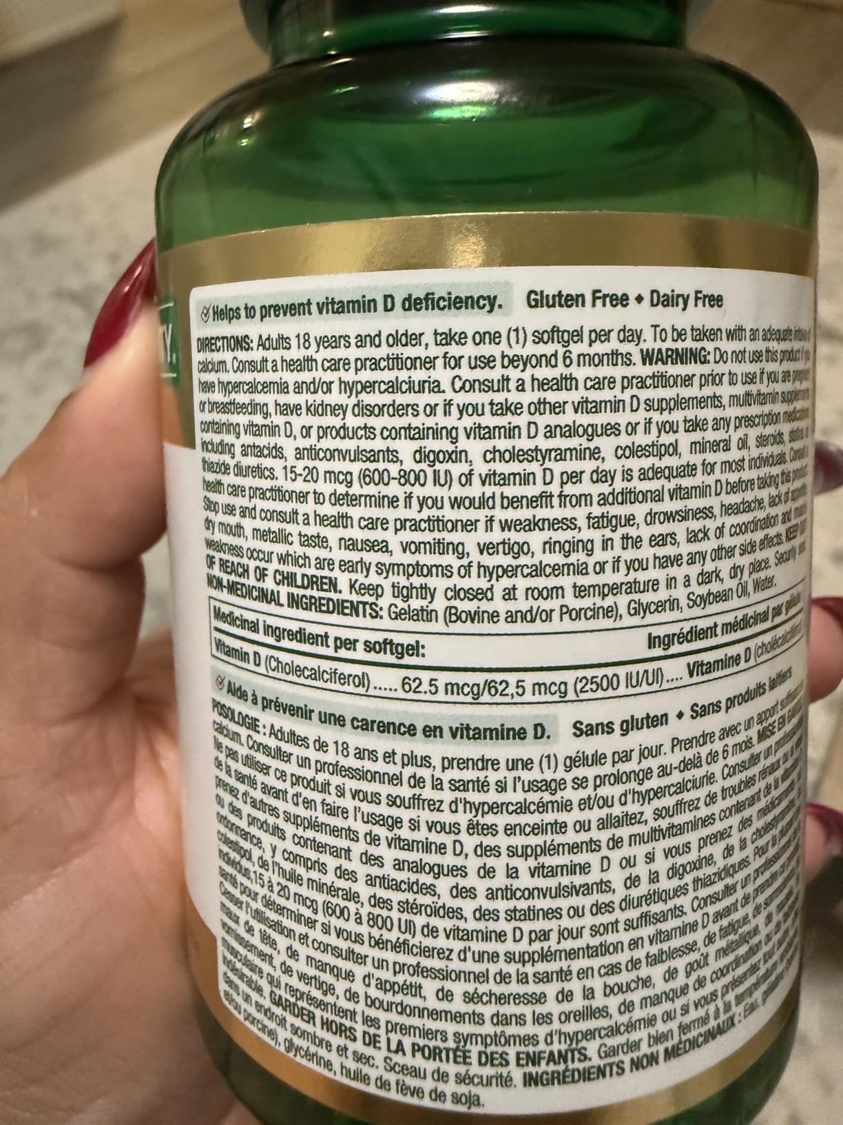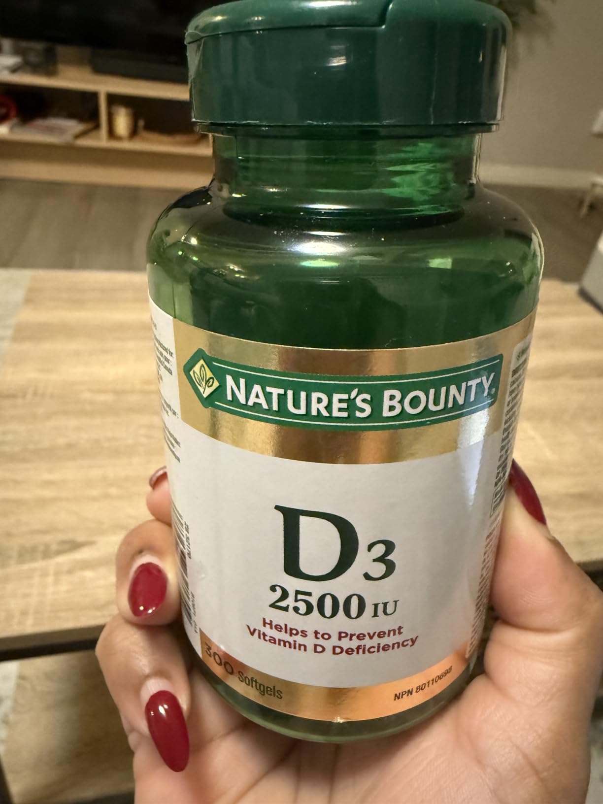 ویتامین D3 نچرال بونتی یک مکمل قدرتمند برای حفظ سلامت استخوانها، دندانها، سیستم ایمنی و عملکرد عضلانی است. این محصول حاوی ۲۵۰۰ واحد بینالمللی (IU) ویتامین D3 (کولهکلسیفرول) در هر سافتژل بوده و به جذب بهتر کلسیم و فسفر در بدن کمک میکند. این نسخه با ۳۰۰ عدد سافتژل، انتخابی اقتصادی و مقرونبهصرفه برای مصرف طولانیمدت است.