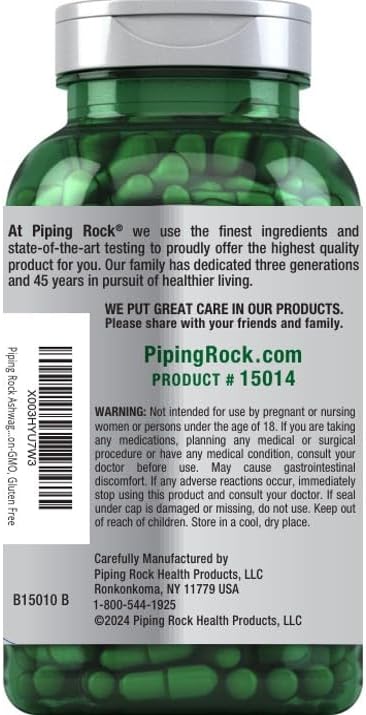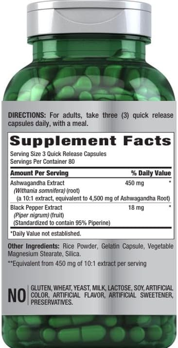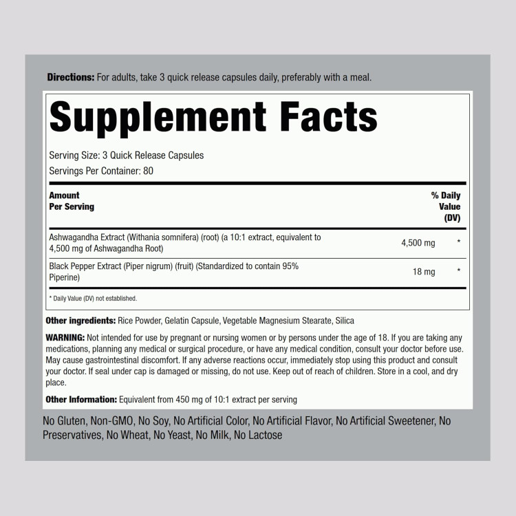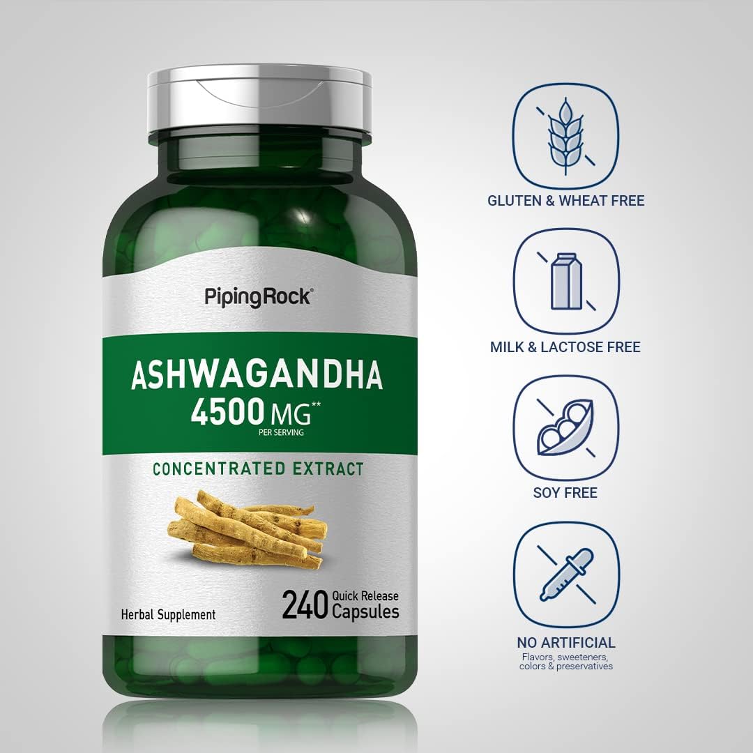 Piping Rock Ashwagandha 4500mg Concentrated Extract, 240 Quick Release Capsules