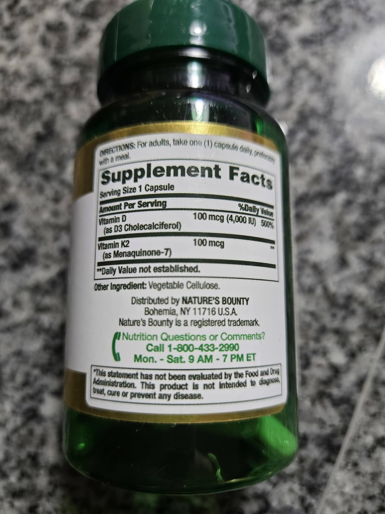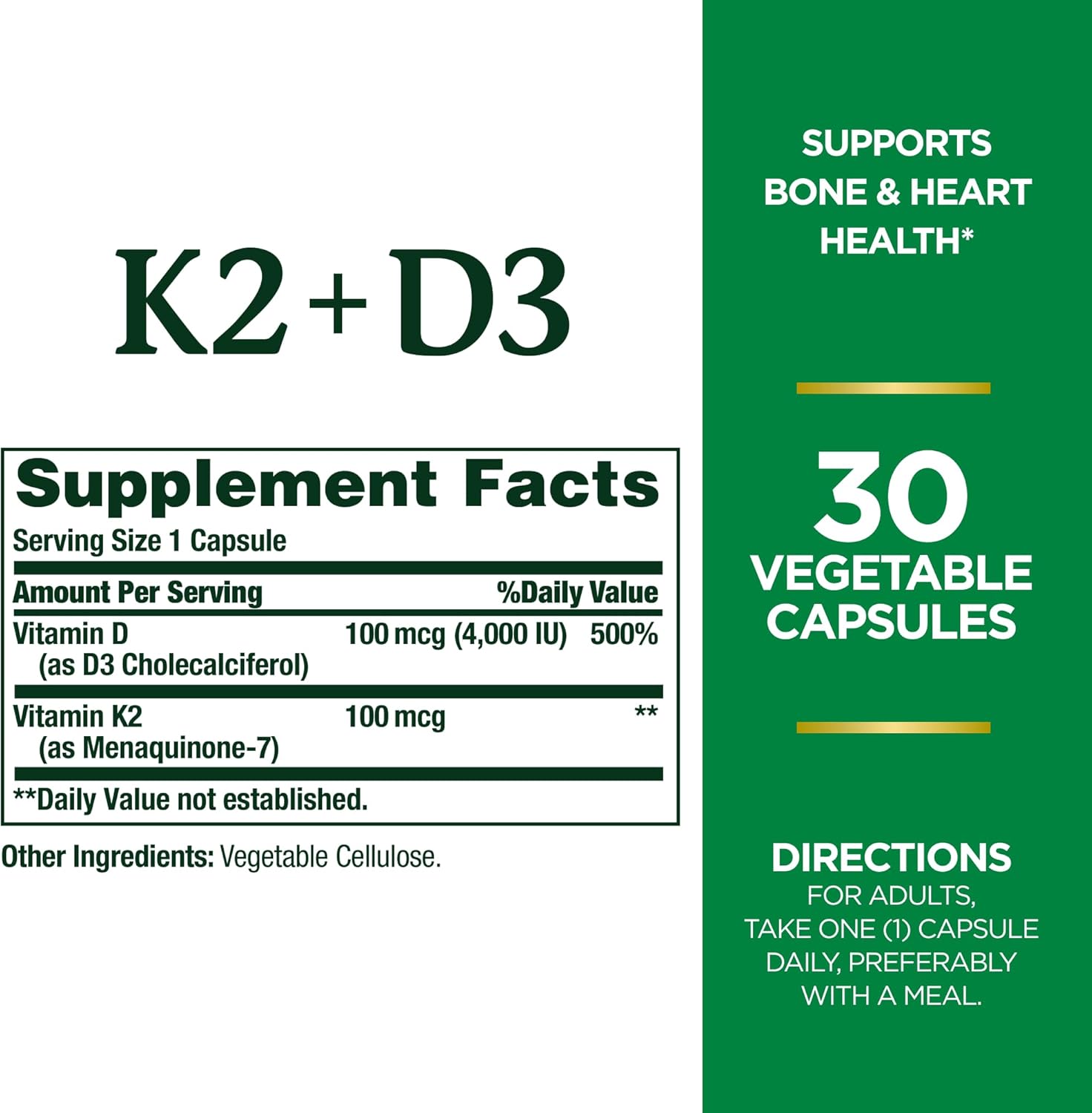 ویتامین D3 + K2 نیچرز بونتی – 30 عدد کپسول گیاهی