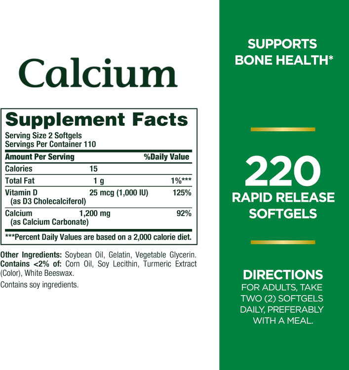 (Nature’s Bounty Calcium 1200 mg with 1,000IU Vitamin D3)
