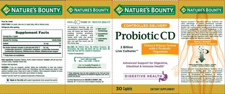 Nature’s Bounty Controlled Delivery Probiotic CD Caplets | 30 Count