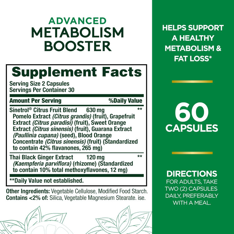 Nature’s Bounty Advanced Metabolism Booster یک مکمل قدرتمند برای افزایش متابولیسم و کمک به چربیسوزی طبیعی بدن است. این محصول حاوی ترکیبات مؤثری است که به حفظ وزن ایدهآل و افزایش سطح انرژی کمک میکند.
