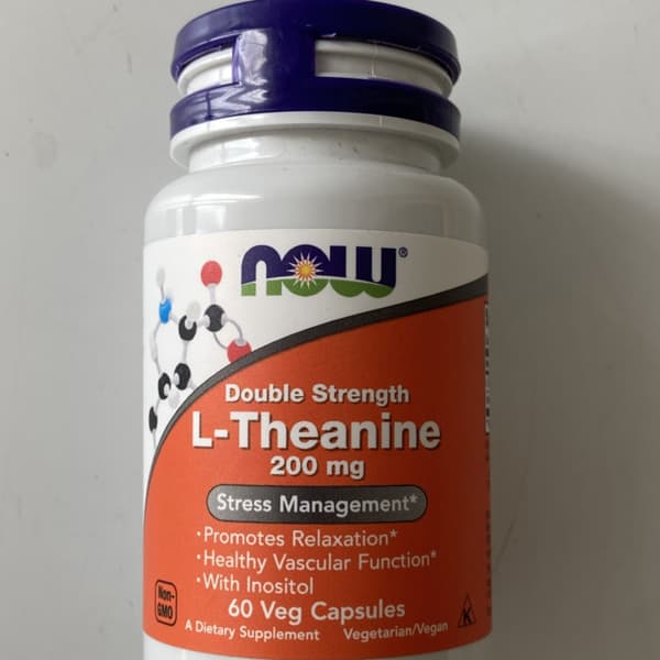 NOW Foods L-Theanine, Double Strength, 200 mg, 60 Veg Capsules