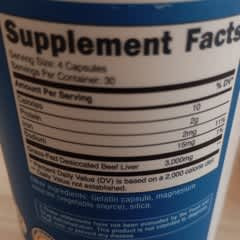 - Desiccated Beef Liver (from Grass-Fed Cattle): 750 mg