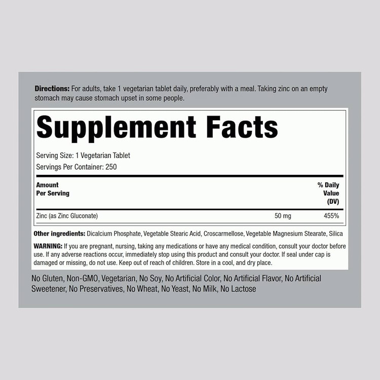 Piping Rock – Chelated Zinc Supplement 50 mg | 250 Tablets