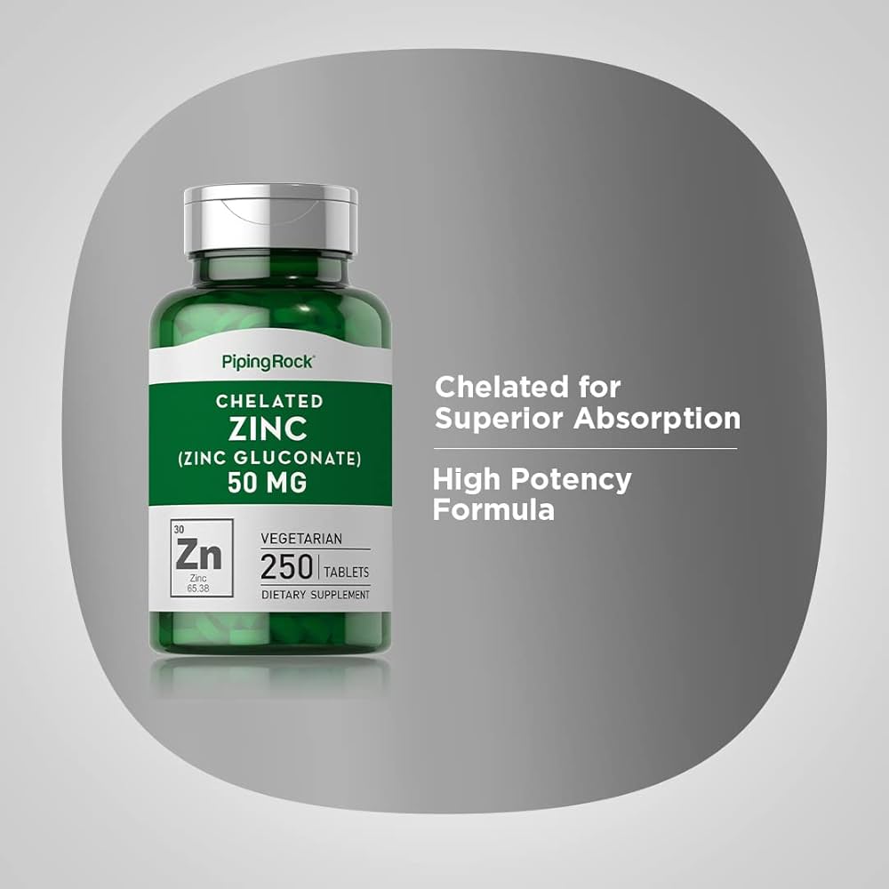 Piping Rock – Chelated Zinc Supplement 50 mg | 250 Tablets
