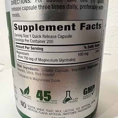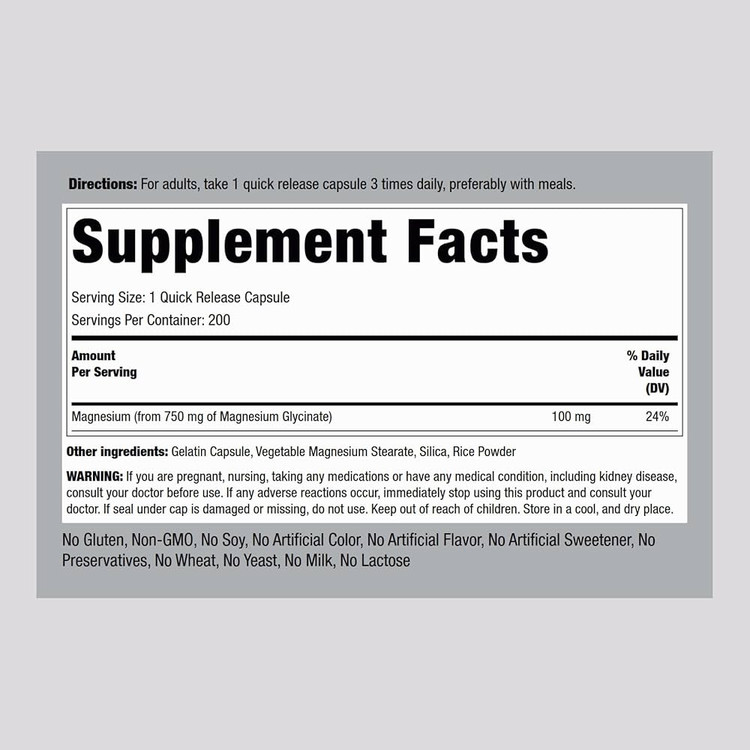 - Magnesium (from Magnesium Glycinate): 750 mg